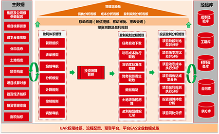 用友盈利规划管理系统依托用友UAP平台,承接投资测算系统,整合项目过程中成本、营销、财务系统数据,实现对项目盈利的动态跟踪测算规划、土增税的测算及分析,其特点是: